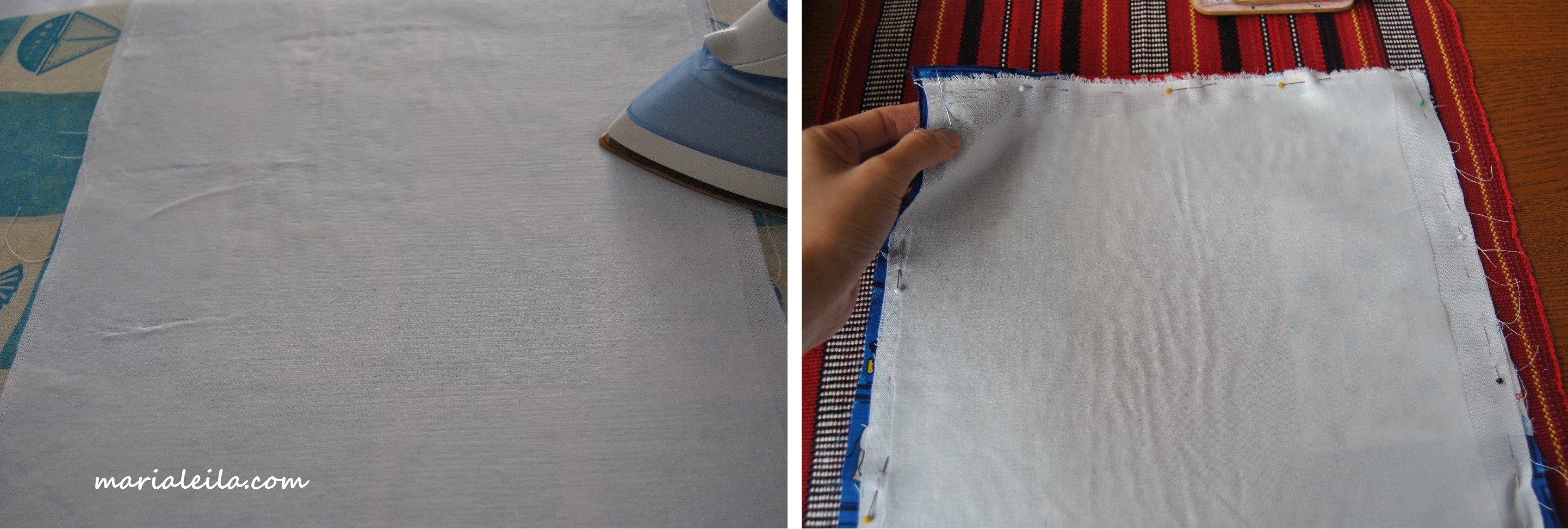 Don’t be confused by the top-left photo. I realized it’s not important to create a hem on the short side of the first fabric.
