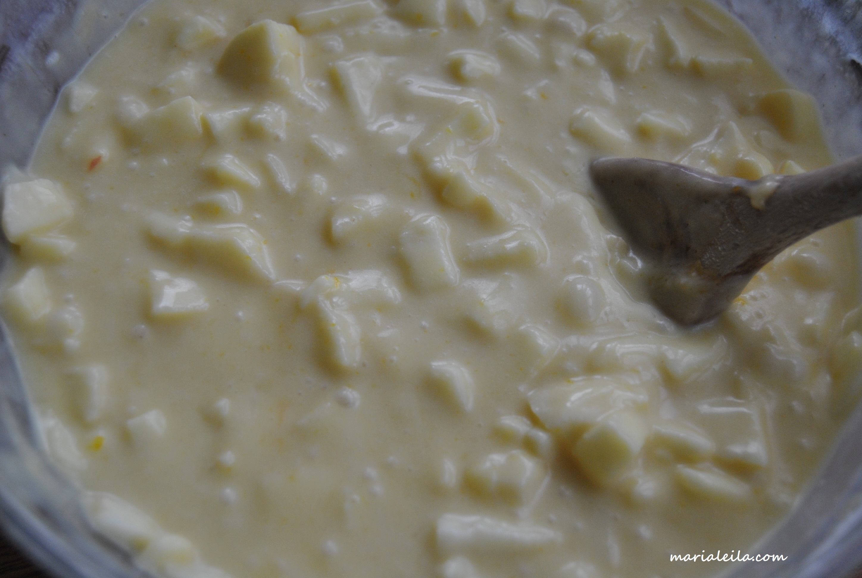 1. Peel and cube apples. Soak in milk and leave refrigerated for at least 2 hours. Sometimes I leave it in the fridge overnight for the apples to be really soft but it isn’t necessary.