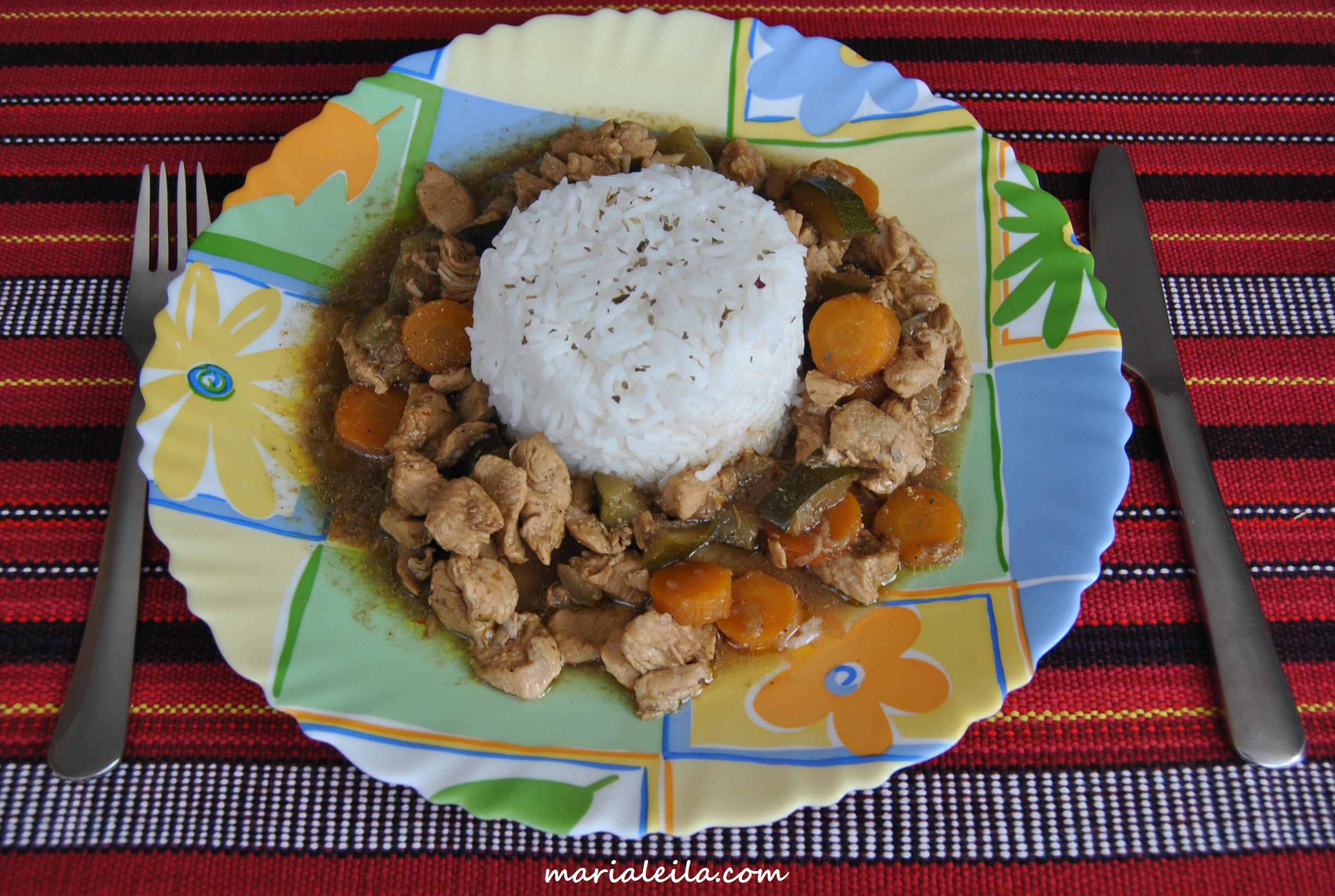 This dish is what I call my weekend quick fix. It has everything in my book as far as kitchen quick-fixes go: easy to prepare, takes care of my weekly dose of spicy food and great to go with rice when I feel like eating some. I usually cook it with either turkey or veal, but if I had to choose between the two, I would say “Turkey, please.”