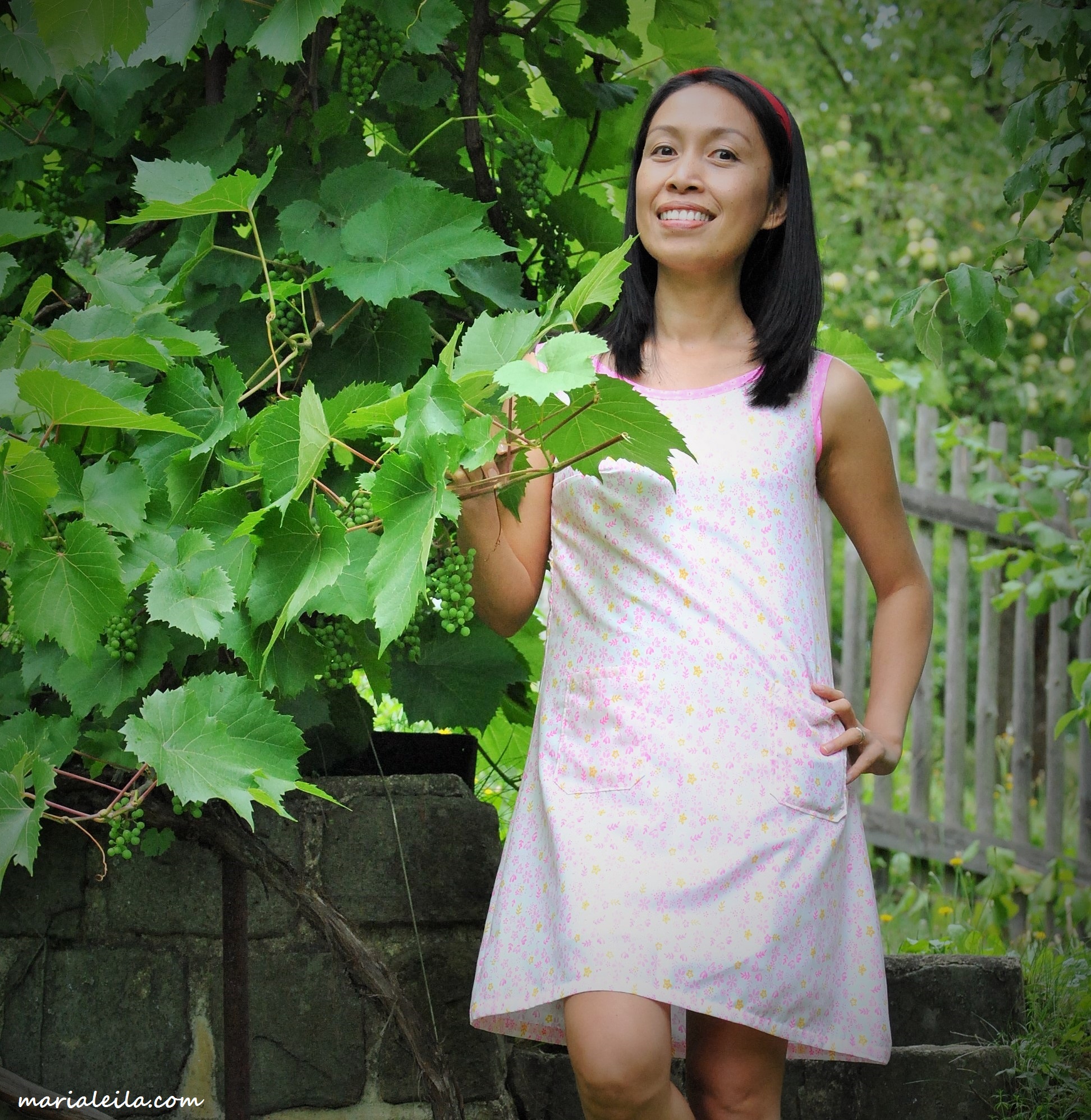 This dress is just right for hot summer weather. It’s light with plenty of room to move around. I used the Sorbetto pattern and just lengthened it to a dress, ditching the pleat in the middle. I also added front pockets for a more classic look using the pattern for Laurel. Yeah, the result is a Sorbetto-Laurel hybrid, perfect for country living.