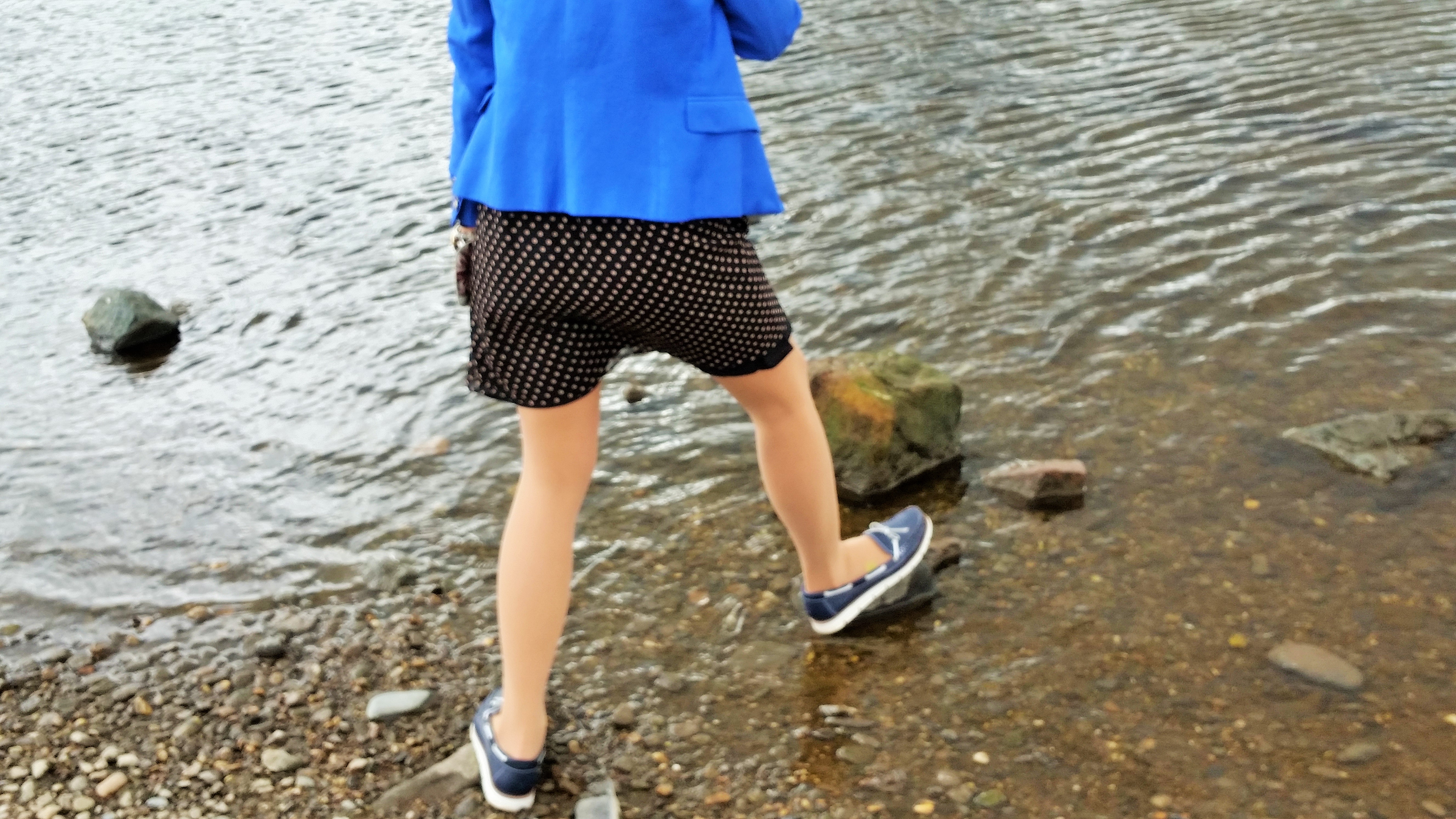 The dress makeover only took a few minutes.  I just shortened the length by several centimeters.  The lining is a light stretch fabric and didn’t really require hemming but I did it anyway.  The dotted fabric is very fine (I have no idea how it’s called) so I burned the edges with a candle to prevent fraying before going to my machine to stitch the hem.  Et voila, my ootd was ready!