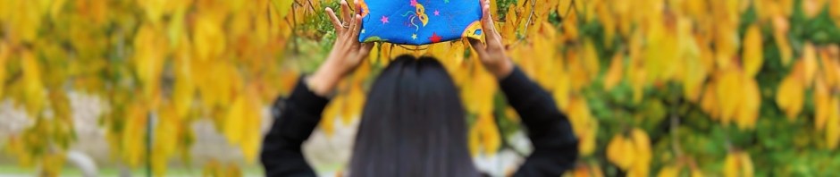 Because it’s my first ever cosmetics bag, I took it out at grandpa-in-law’s garden for a couple of photos. I don’t know which is prettier – the cherry tree in autumn or this bag. Or both. 🙂