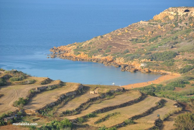Top photo:  Fungus Rock in Dwerja, one of my favorite places in the island.  Middle: Ramla Bay is a true beauty.  Bottom:  Adi in another favorite place of mine called Mgarr Ix Xini (pronounced em-jar-ee-shini).