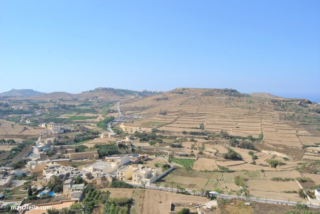 Top: Our car provided by Eagle Garage for €30/day, gas excluded. Bottom: The winding and hilly roads of Gozo seen from the top of Victoria’s Citadel.
