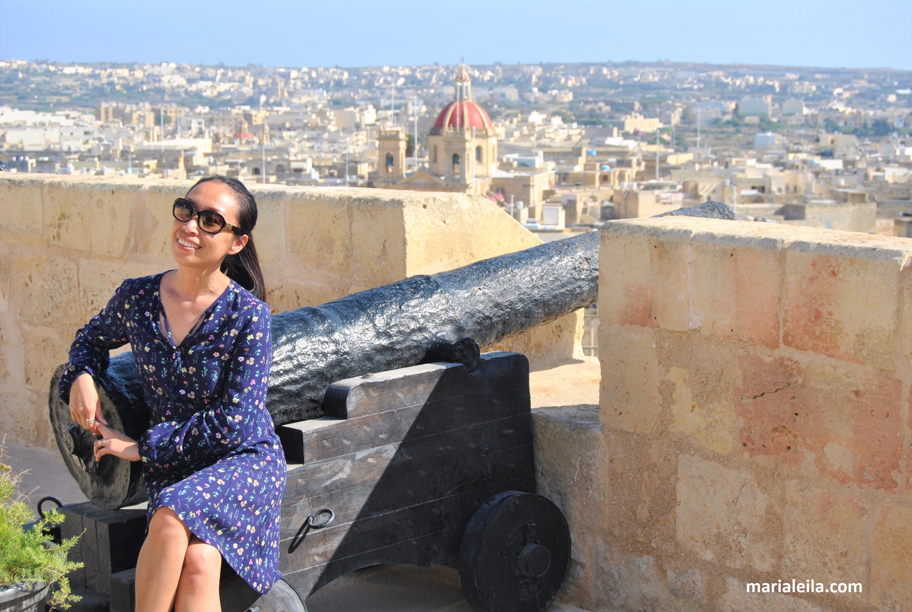 Top: Victoria, the capital city of Gozo with its massive Citadel, seen from the town of Xaghra. Middle: Yours truly at the Citadel. Bottom: Still at the Citadel. It was so hot up there.