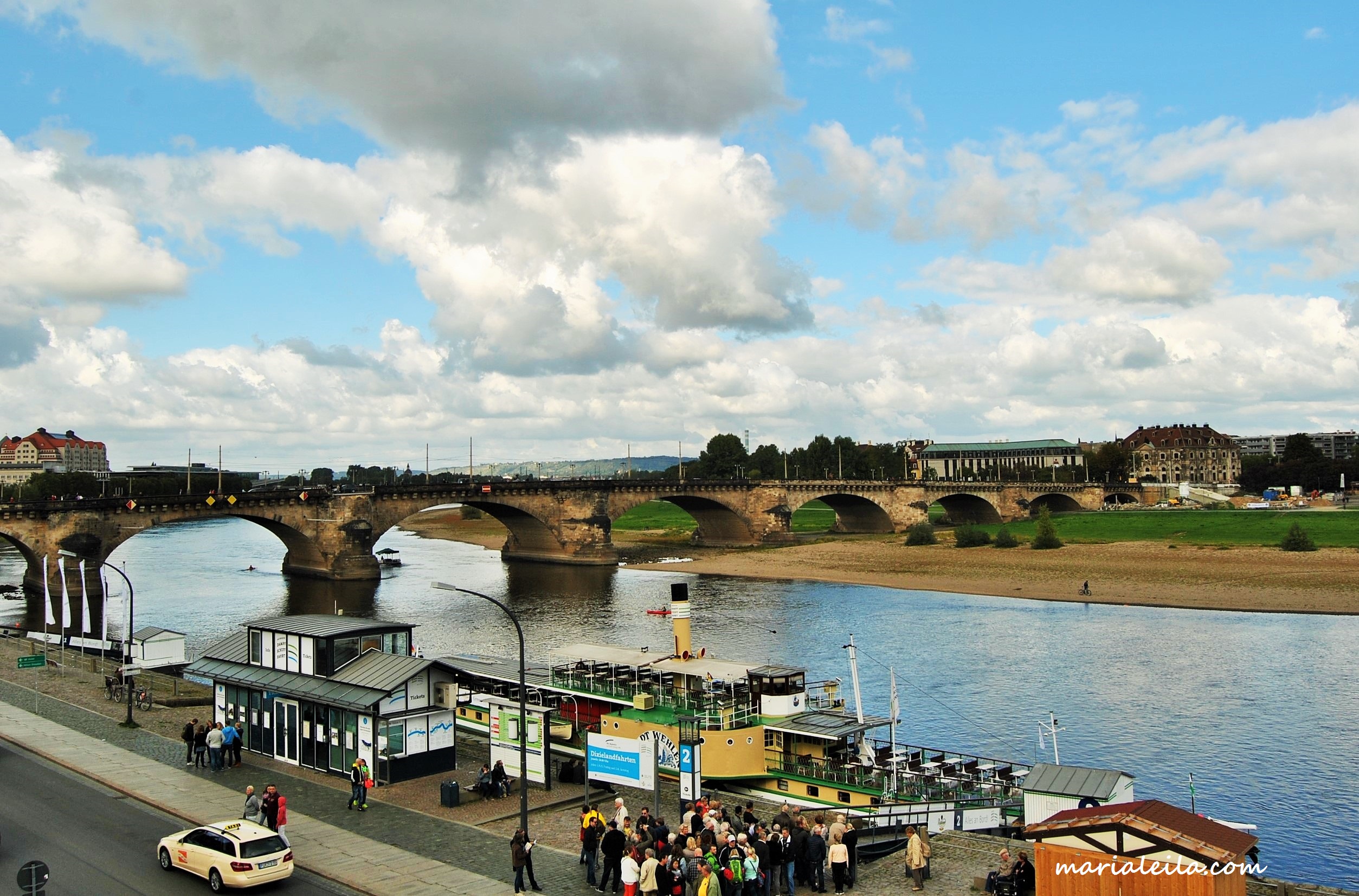 Augustusbrucke reminds me of one of Prague’s bridges without a throng of people crossing it. Under the bridge the water level of Elbe was very low. We joined several other people by the banks playing who could throw rocks the farthest. I was right there at the river, as close to Elbe as possible. Mission accomplished.